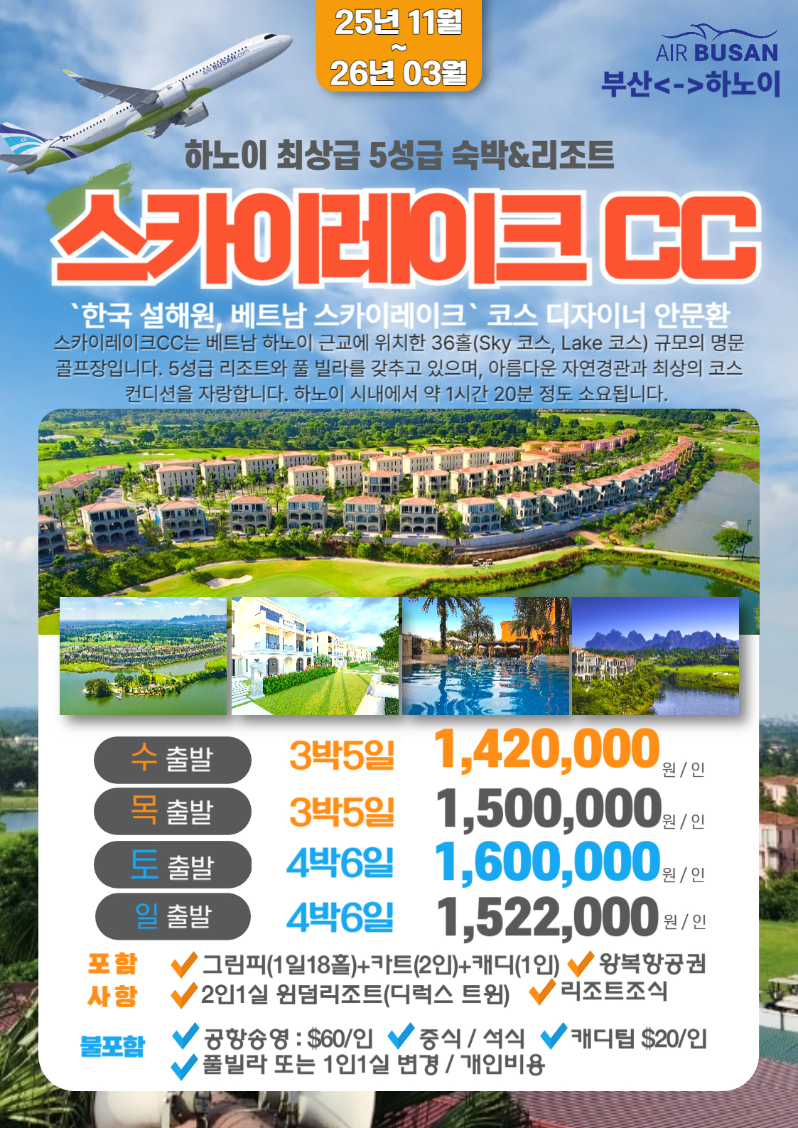 ⭐ 에어부산 전세기 하노이 골프패키지 부산출발 수,목,토,일, ⭐